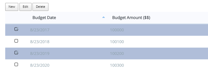 Additionally, you may use the Edit or Delete buttons to manage selected budget records.