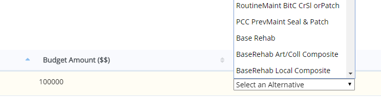 For each budget record, you can designate specific treatments/repairs to the pavement segments.