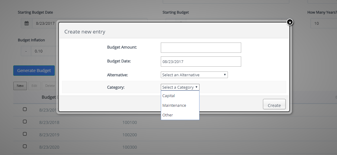 Similarly, for each budget year, a treatment/repair category may be applied.