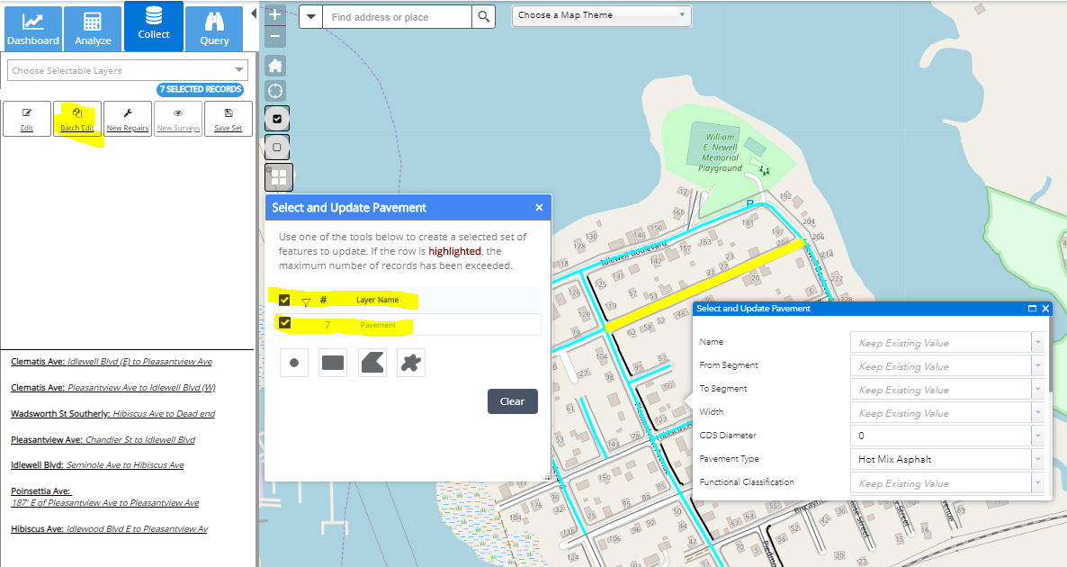 Note that for the Batch Editing function to appear, only one selectable layer (if applicable) from the Choose Selectable Layers drop-down menu can be checked.