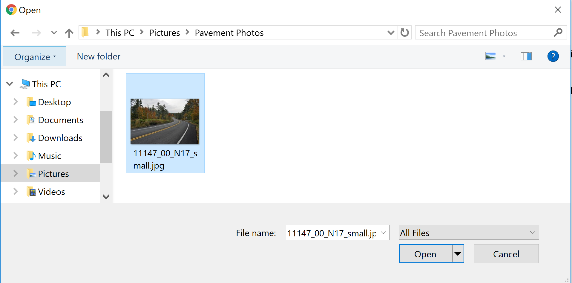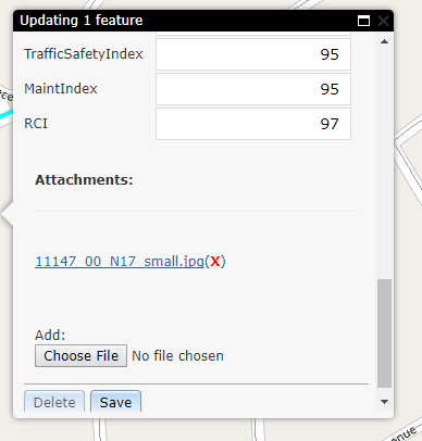 SAM IS can store photographs or other attachments along with the asset record. These attachments can be photographs, images, .pdf files, text documents, or virtually any other type of file. For example, if you have photos of a pavement treatment, you can associate it with the pavement segment that was affected, both before and after the treatment.