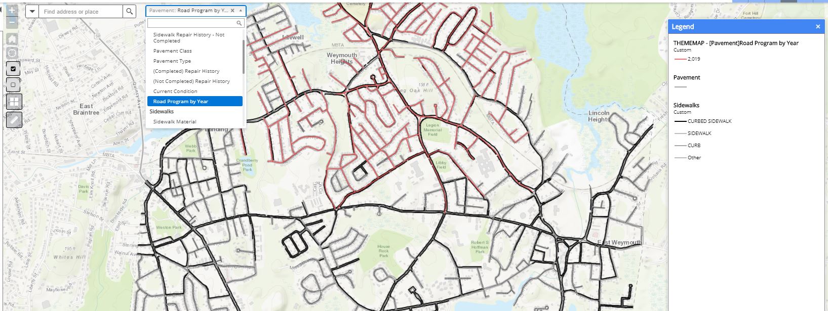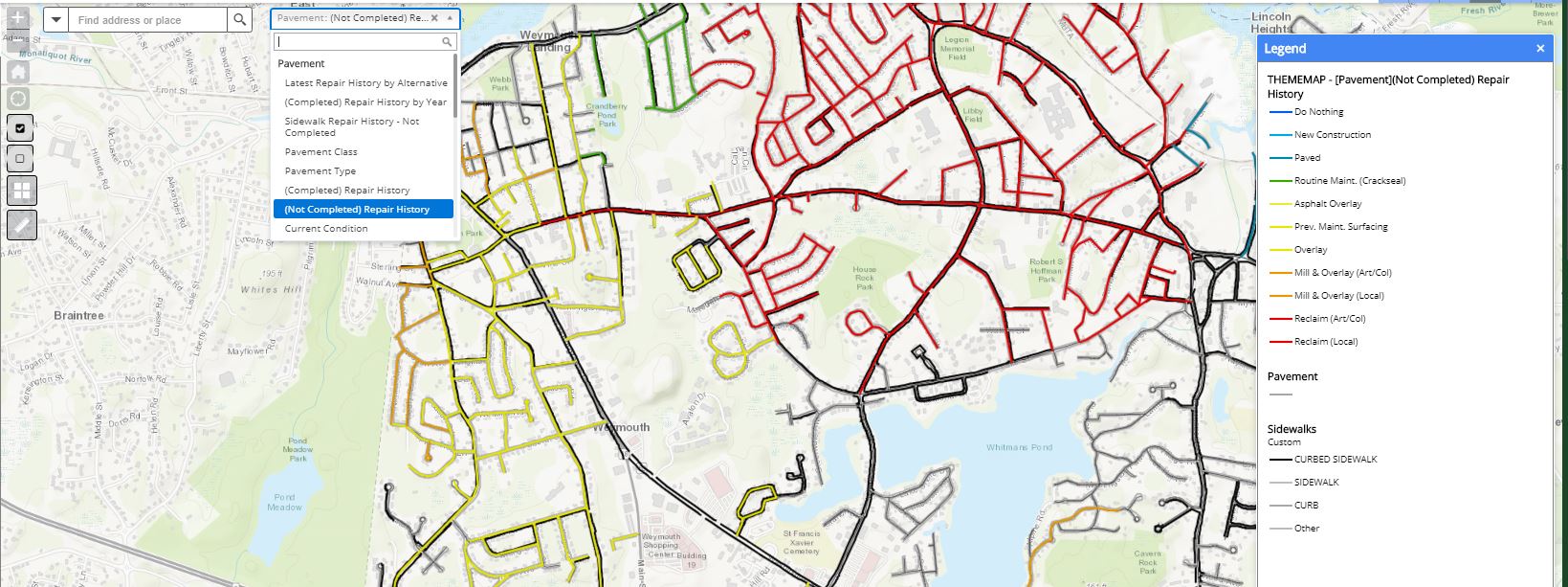 Additionally, you can display areas of pavement designated for inclusion in your Road Program: