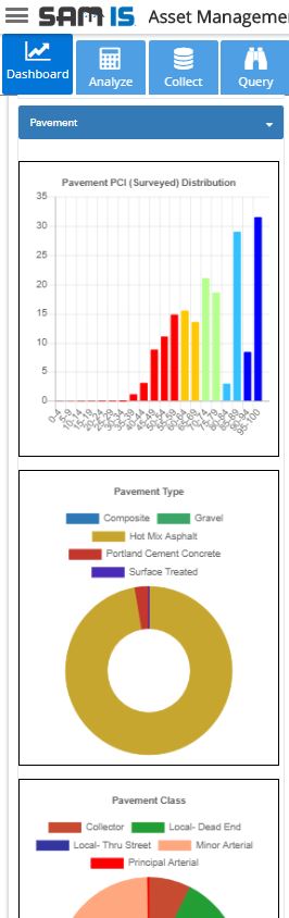 The Dashboard panel displays summary information related to the assets managed.
