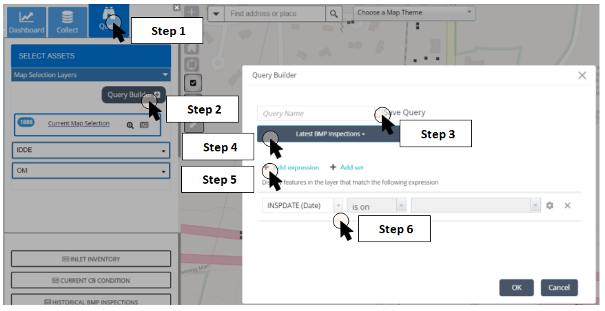 NOTE: To select the queried assets in the map, you must save the query and re-select the saved query.