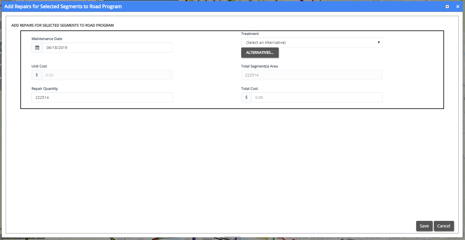 The Add Repairs for Selected Segments panel opens.